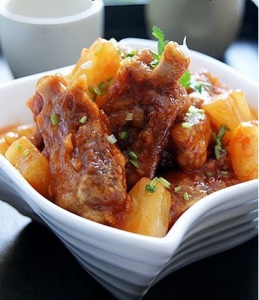 菠萝煮排骨的做法你知道吗,菠萝煮菜已经不是新鲜事了,今天就配排骨来煮,酸甜可口,颜色也漂亮,绝对美味佳肴,看到那个色泽就觉得胃口大增,现在煮菜都需要有创意,下面就介绍下菠萝煮排骨的做法,介绍如下: